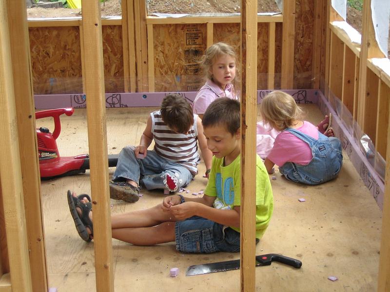 Picking at pink foam scraps