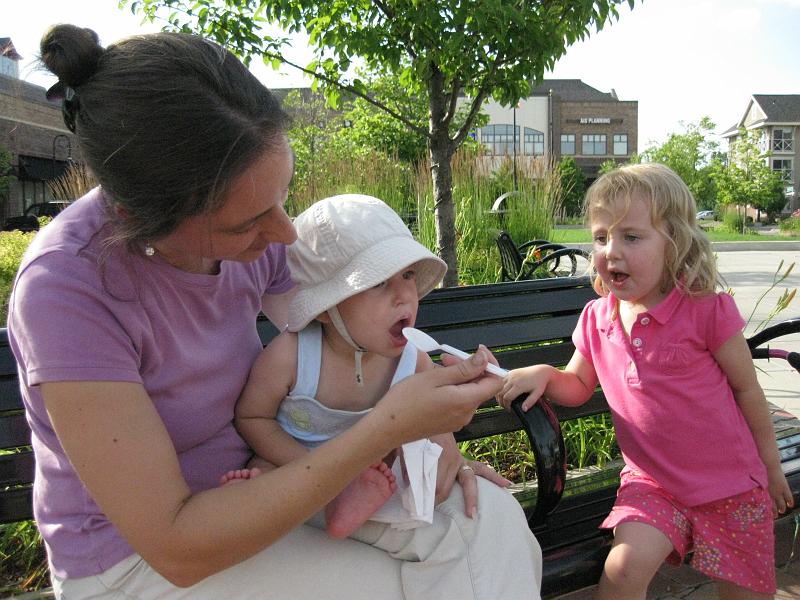 | Here's Reuben eating his free birthday ice cream (a few days early) from Coldstone, and Leah prompting him on how to do it. |