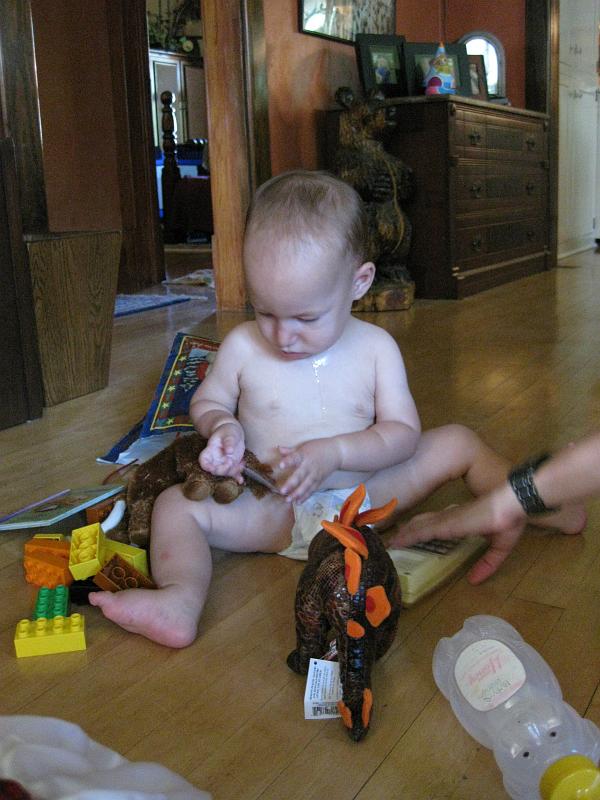 | The stegosaurus and woolly mammoth were a little more interesting. Check out the drool on that guy's chest! (Tooth number six arrived shortly after this). |