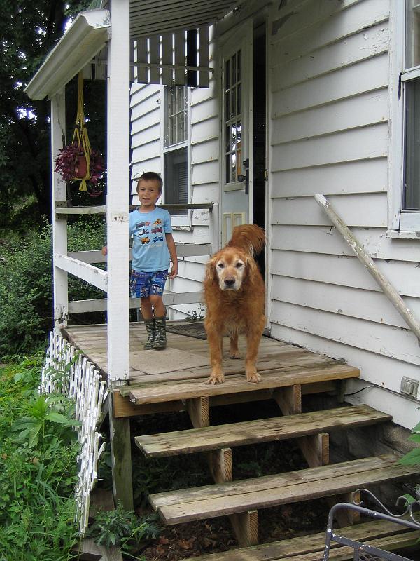 | Owen has a job. He lets our neighbor's dogs out on the two days a week when he works too far from home to easily make it back mid-day. Owen is very proud of his job, and loves seeing the dogs. |