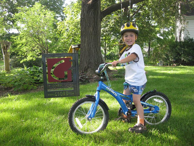 | Owen posing by our new yard sign for design projects under construction. |