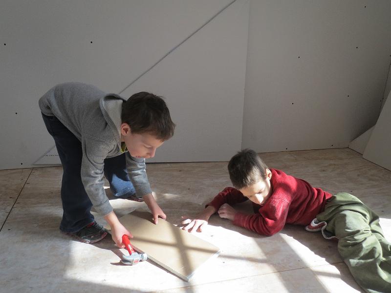 My little boys upstairs. Reuben is helping to move sheet rock.