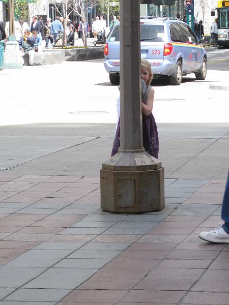 On the six block walk back to the train after the concert was over, Owen and Brooklyn ran ahead to the next crosswalk every time, and then would "hide" behind the street light. It's actually amazing how well a light post can hide those little people!