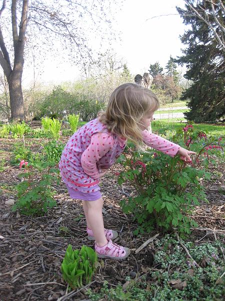 Another beautiful spring day -- Leah's showing the bleeding hearts that are finally fully blooming.