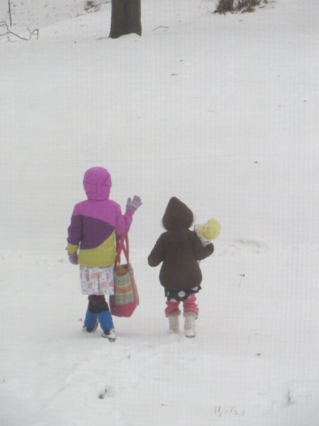 Here go my girls walking over to the neighbor's house in the snow.