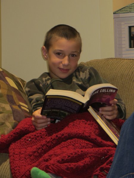 And this is a pretty typical way to find Owen - snuggled up in a blanket with a book.