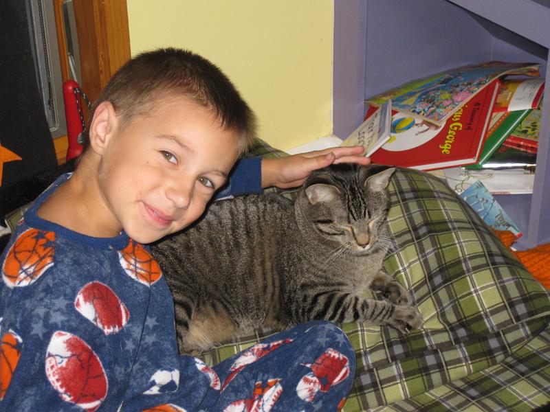 Owen with his sweet Noble, who apparently thinks he's the king of the world and has more right to Owen's pillow than Owen does.