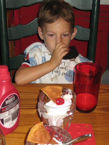 This is our Labor Day tradition - big fancy ice cream and fruit concoctions in the fancy glasses.